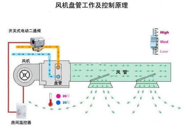 風機盤管控制工作原理風機盤管控制多采用就地控制的方案,分簡單控制和溫度控制兩種:風機盤管簡單控制:使用三速開關直接手動控制風機的三速轉換與啟停。風機盤管溫度控制:使用溫控器根據設定溫度與實際檢測溫度的比較、運算,自動控制電動兩/三通閥的開閉,風機的三速轉換,或直接控制風機的三速轉換與啟停,從而通過控制系統水流或風量達到恒溫。風機盤管加新風系統分為兩部分,中央空調風機盤管和新風系統,風機盤管是中央空調末端設備,新風系統負擔新風負荷以滿足室內空氣質量,風機盤管加新風系統是水系統空調中一種重要形式,也是民營建筑中采用較為普遍的空調形式。