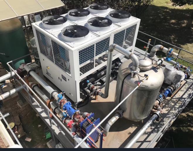 當空氣冷卻式制冷機啟動時,制冷劑吸收蒸發器中被冷卻物體的熱量并蒸發。壓縮機不斷地從蒸發器中提取產生的氣體,并將其壓縮成高溫高壓蒸汽。然后,制冷劑蒸汽被送往冷凝器,在那里與空氣進行熱交換。釋放熱量后,它凝結成液體。液體制冷劑在被膨脹閥減壓后,進入蒸發器,在那里再次蒸發,吸收冷卻物體的熱量。重復該熱交換過程,直到工業用水冷卻到所需溫度。
