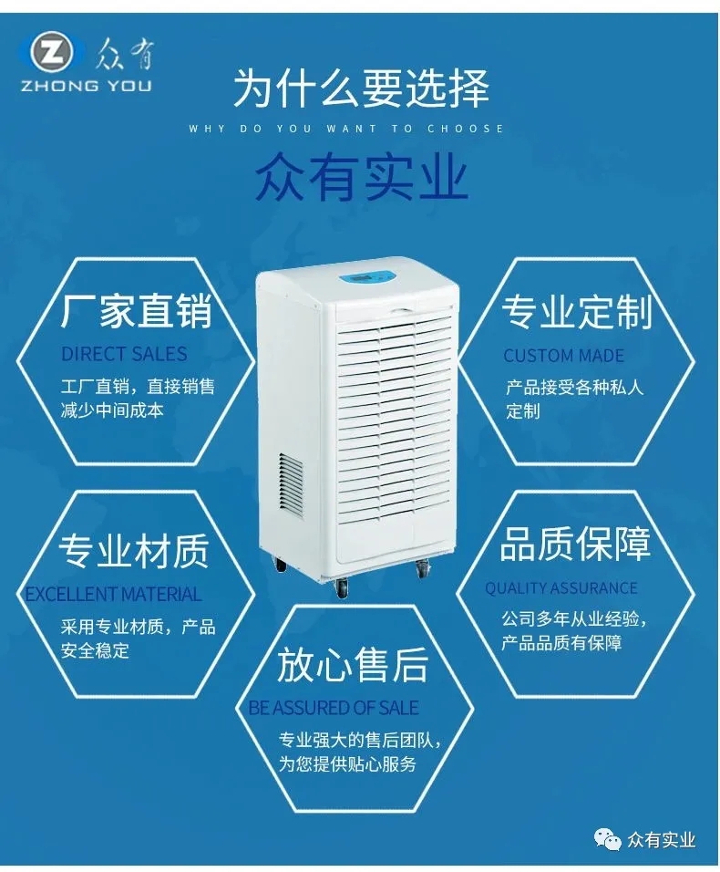 工業(yè)除濕機(jī)也分很多種,有壁掛式的、吊頂式的、新風(fēng)式的……一般企業(yè)需要根據(jù)自身的使用環(huán)境,以及使用需求,來明確應(yīng)該選擇什么樣的除濕機(jī)。例如對環(huán)境干燥程度較高的產(chǎn)品,并且工廠有臺階設(shè)計的,可以選擇大滾輪扶手式的工業(yè)除濕機(jī),除濕更方便。眾有工業(yè)除濕機(jī),擁有25cm特大滾輪扶手,可以輕松翻越臺階,配置進(jìn)口LG品牌壓縮機(jī),幫助工廠急速除濕。