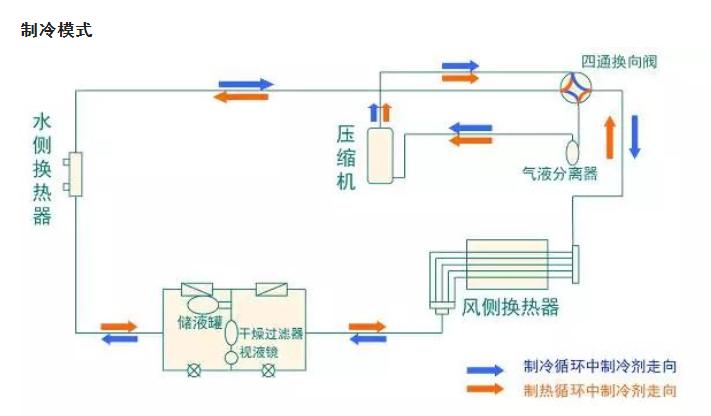 風冷熱泵是以空氣作為冷熱源的熱泵系統。夏季制冷工況下,室外機扮演冷凝器角色,將壓縮機輸出的高溫高壓制冷劑冷卻放熱;室內機則作為蒸發器,促使低溫低壓制冷劑蒸發吸熱,實現降溫除濕效果。冬季供暖時,系統通過切換運行模式,室外機轉為蒸發器吸收空氣熱量,室內機變為冷凝器向室內釋放熱量,完成制熱過程。這一過程中,風冷熱泵僅需通過四通換向閥的切換,即可完成制冷與供暖工況的轉換,無需額外配置其他冷熱源,顯著提升了安裝與使用的便捷性。此外,因其采用電力驅動,僅需消耗少量電能,即可從空氣中提取數倍于輸入功的熱量,具備高能效比與低運行成本的優勢。