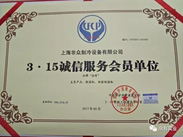 郵編P.C: 201612【上一個】: 恭賀上海眾有實業全資子公司非眾制冷設備公司榮獲高新技術企業認證!